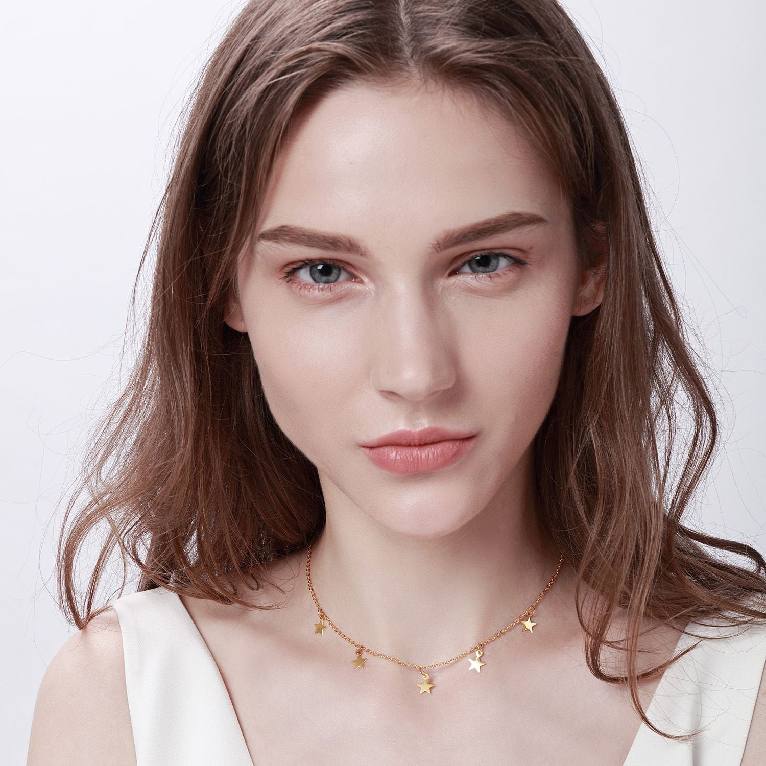Radiate effortless elegance with the Stellar Charm Necklace by Saga Jewels. Crafted from high-quality stainless steel and plated in 18K gold, this delicate necklace features dainty star charms that dance with every movement. Designed for the modern woman who loves a hint of celestial sparkle, it’s perfect for layering or making a subtle statement on its own. Tarnish-resistant and hypoallergenic for everyday wear.