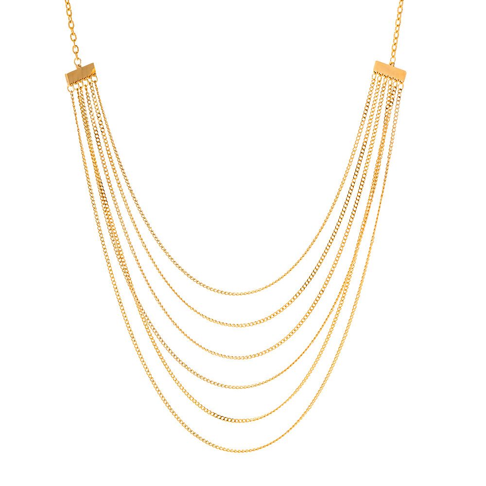 Grace, redefined. The Aurelia Layered Pearl Necklace from Saga Jewels is a masterpiece of modern opulence. Six fluid layers of 18K gold–plated stainless steel drape elegantly across the neckline, adorned with luminous pearls that whisper timeless sophistication. Designed for the woman who embodies confidence and poise, it’s an exquisite statement of enduring beauty and refinement.
