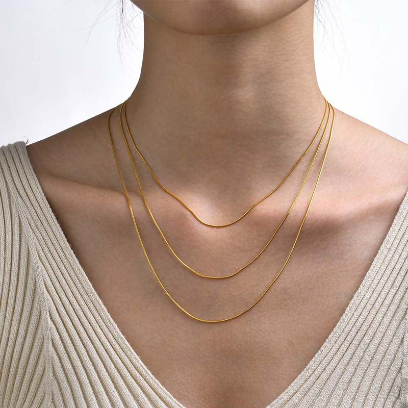 Elegant and refined, Fine by Saga & Segust embodies modern minimalism at its best. Crafted from premium stainless steel and finished with a luxurious 18K PVD gold plating, this dainty 1 mm snake chain offers both strength and subtle sophistication. Its sleek, lightweight design drapes beautifully from 40 cm to 50 cm, making it perfect for layering or wearing alone. Hypoallergenic, tarnish-resistant, and made to last, Fine is the ultimate everyday essential for effortless elegance.