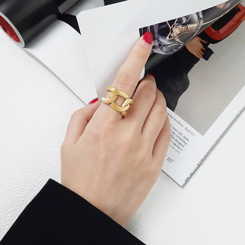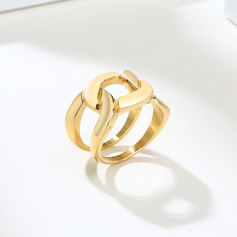 Geometric Chain Ring – 18K Gold-Plated Titanium Steel Ring for Women